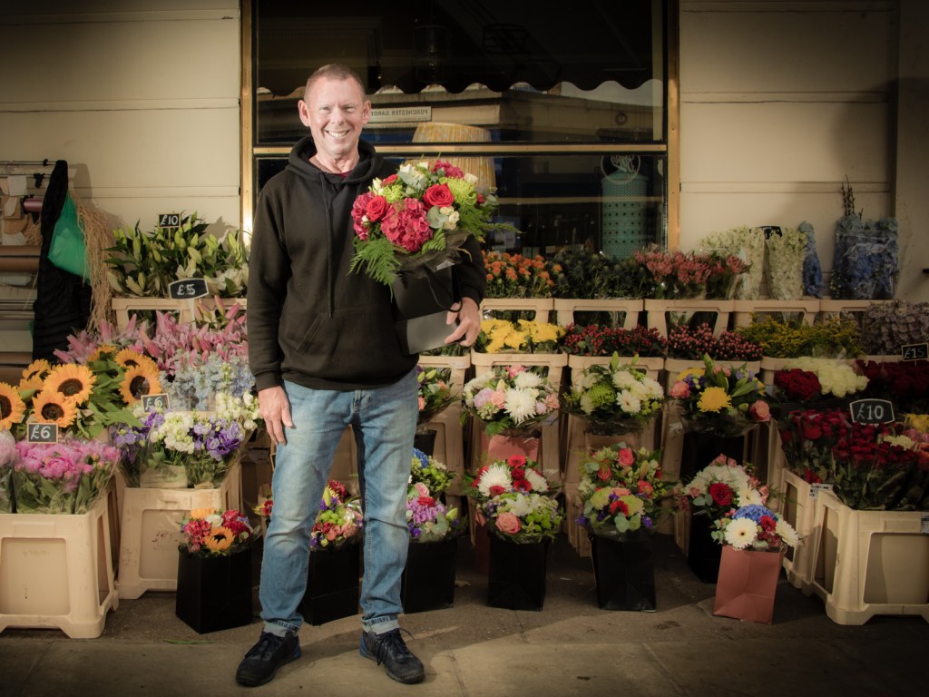 Chris is a flower seller on Queensway in Bayswater W2. His pitch is directly opposite Whiteleys outside The Prince Alfred Pub. The family have been selling flowers there since 1980. Chris remembers helping his father there when Whiteleys was still a Department Store, before it metamorphosed into a Shopping Centre in 1981.